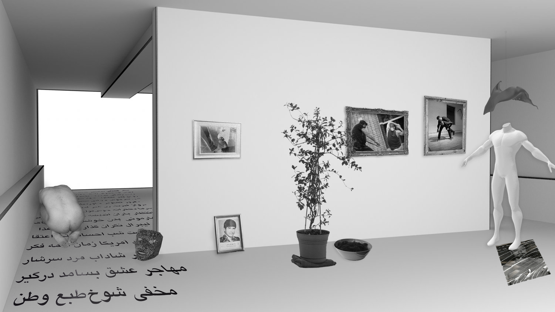 Bahram's creative practice involves performance, installation, books, ephemera, social media, video and photographs, through which he examines the concept of impotent medium, such as texts that are incapable of conveying their intended message, destructed photos that are depleted from the iconic value of an image, and bodies that are unable to project the real identity of individuals. Within this destructive space lies an important and affirmative sentiment, which is the main objective in his relational practice: the possibility of relocating the meaning from the art object to the contingency of reception.
